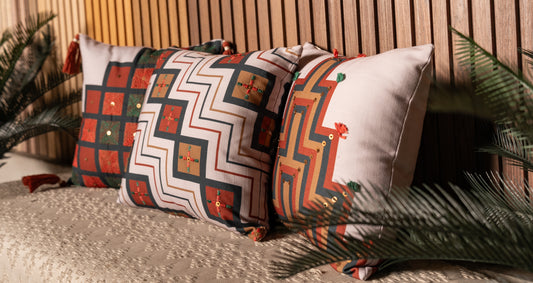This collection embodies the essence of Boho Indian aesthetics, showcasing a rich tapestry of design elements. Our table runners, cushions, and table mats are meticulously crafted from vibrant printed fabrics. The cushions are a testament to artisanal expertise, featuring intricate hand embroidery on the front, while the backside boasts a simple yet elegant print alone, offering versatility in use. Similarly, the table runners and table mats in this collection are ingeniously designed for dual utility, as they showcase the same captivating print on both sides, ensuring a stylish and functional addition to your decor.